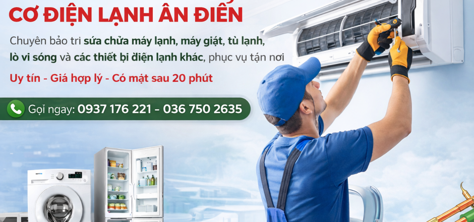 Cơ Điện Lạnh Ân Điển là đơn vị chuyên cung cấp các dịch vụ sửa chữa, lắp đặt và bảo trì điện lạnh uy tín, phục vụ tận nơi cho hộ gia đình, phòng trọ, cửa hàng và doanh nghiệp tại TP.HCM và các khu vực lân cận. Với phương châm “Làm như làm cho chính mình”, Ân Điển luôn đặt chất lượng dịch vụ và sự hài lòng của khách hàng lên hàng đầu.